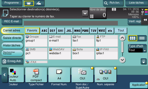 Nom machine | Nom de la machine enregistré dans [Utilitaires] - [Réglages Administrateur] - [Réglages Administrateur/Machine] - [Entrer Adresse Machine] - [Nom machine]. |