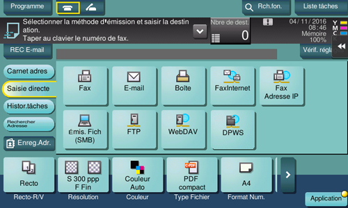 Le fait de taper sur [Réglages] vous permet de modifier les réglages d'options tels que [Couleur] et [Format de Numérisat].Tapez sur [Démarr.]