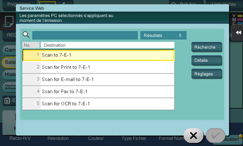 Les ordinateurs sur le réseau dans lequel cette machine est désignée en tant que scanner du service Web apparaissent en tant que destinations.