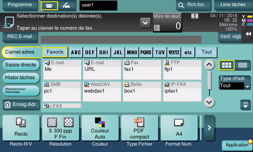 Pour des détails sur le mode de connexion, voir [Écran de connexion] .Tapez sur [Numéris./Fax].