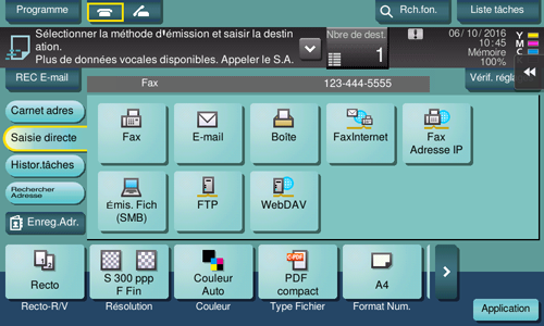 Enregistrer depuis l'écran de base Fax/Numérisation