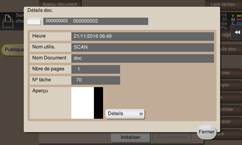 Vous pouvez tapez sur [Détails] ou sur une image miniature pour afficher un aperçu de l'image du fichier.