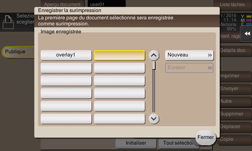 Pour enregistrer une image de surimpression en écrasant une existante, sélectionnez la touche enregistrée et tapez sur [Ecraser].
