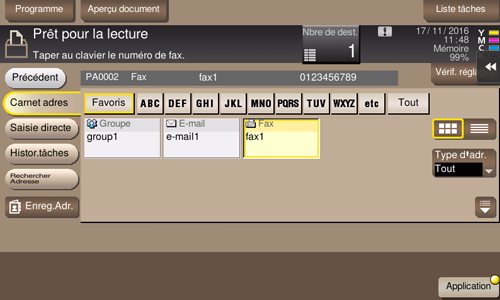 Sélectionnez un fax à retransmettre, puis tapez sur [Envoyer Fax].