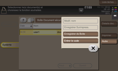 Sélectionnez un fichier à imprimer, puis tapez sur [Autre] - [Entrer le Code].