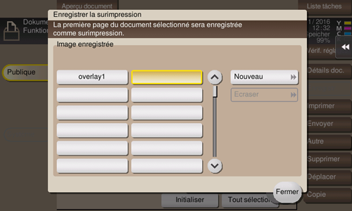 Pour enregistrer une image de surimpression en écrasant une existante, sélectionnez la touche enregistrée et tapez sur [Ecraser].