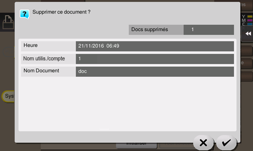 Sélectionnez un fichier, puis tapez sur [Supprimer]. Le fichier est supprimé. Vous pouvez sélectionner plusieurs fichiers et les supprimer simultanément. Vérifiez les détails du fichier, puis tapez sur [Oui].