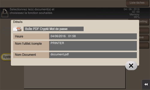 Tapez sur [Système] - [PDF Cryptés MdPass].