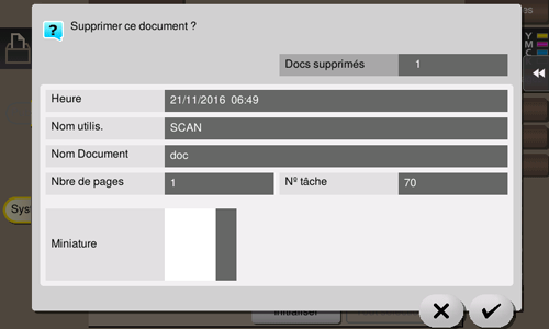 Sélectionnez un fichier, puis tapez sur [Supprimer]. Le fichier est supprimé. Vous pouvez sélectionner plusieurs fichiers et les supprimer simultanément. Vérifiez les détails du fichier, puis tapez sur [Oui].