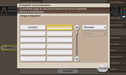 Pour enregistrer une image de surimpression en écrasant une existante, sélectionnez la touche enregistrée et tapez sur [Ecraser].