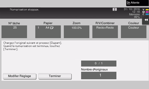 Chargez l'original suivant, puis appuyez sur la touche Départ.