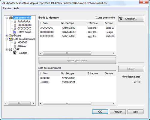 Vous pouvez enregistrer jusqu'à 100 destinataires.