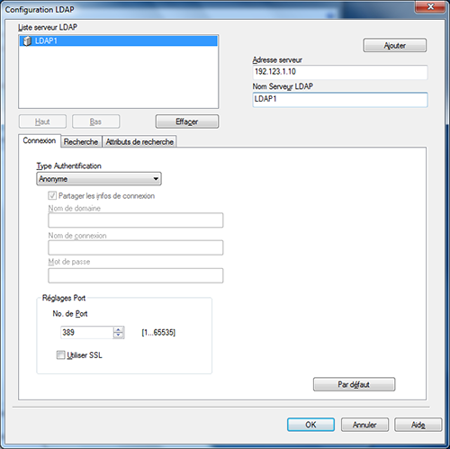 Saisissez un nom de serveur LDAP à afficher sur la [Liste serveur LDAP].