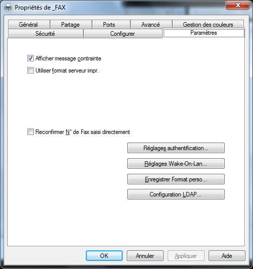 Veuillez trouver ci-après la procédure d'enregistrement du serveur dans le pilote de fax.