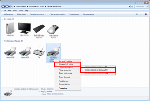 Si [Périphériques et imprimantes] ne s'affiche pas, cliquez sur [Panneau de configuration] - [Matériel et audio], cliquez sur [Afficher les périphériques et imprimantes].