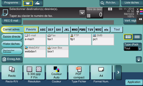 Les réglages de la fonction Copie ou Fax/Numérisation font l'objet d'une recherche.