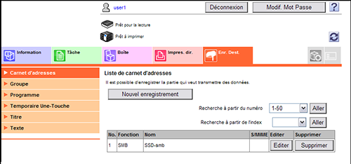 Vous permet d'enregistrer les destinations fréquemment utilisées et de modifier le contenu de l'enregistrement.