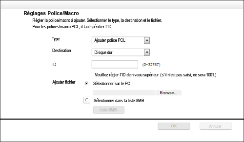 Entrez un ID de police ou de macro pour les polices PCL ou les macros PCL.