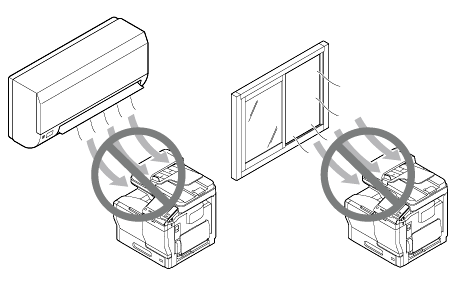 Si cette machine est installée ou déplacée vers un environnement soumis à de fortes modifications de température, de la condensation se forme dans la machine, ce qui risque de réduire la qualité d'impression. En cas de condensation détectée, attendez une heure environ avant de l'utiliser pour la laisser s'adapter au nouvel environnement.