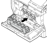 Assurez-vous que la couleur de la Cartouche Toner coïncide avec celle de la fente d'insertion de l'unité principale, puis enfoncez la Cartouche Toner jusqu'au fond.