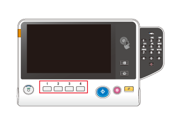 Tapez sur [Utilitaire] - [Réglages administrateur] - [Réglages système] - [Réglages touche enregistrée] - [Touche fonction fixe] et appuyez sur la touche à affecter à une fonction différente.