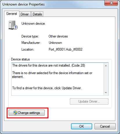 Sous Windows 7, ouvrez le menu Démarrer, puis cliquez sur [Périphériques et imprimantes]. Si [Périphériques et imprimantes] ne s'affiche pas, sélectionnez [Panneau de configuration] - [Matériel et audio] et cliquez sur [Afficher les périphériques et imprimantes].Faites un clic droite sur le nom de périphérique ou sur [Périphérique inconnu] de l'unité d'authentification affiché dans la catégorie [Non Spécifié], puis cliquez sur [Propriétés].