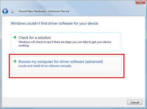 Cliquez sur [Rechercher un pilote logiciel sur mon ordinateur (avancé)].