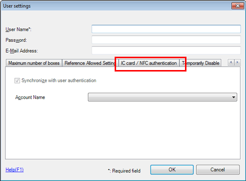 Entrez le nom d'utilisateur et le mot de passe, sélectionnez l'onglet [Authentification par carte IC / NFC].