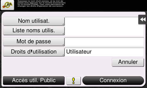 Si Accès util. Public (utilisateurs non enregistrés) est activé, appuyez sur [Accès util. Public] pour vous connecter à cette machine.
