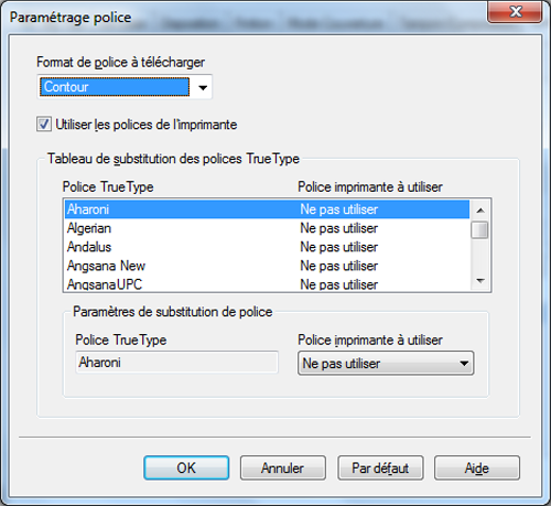 Vous pouvez aussi éliminer les caractères troubles en décochant la case [Utiliser les polices de l'imprimante].