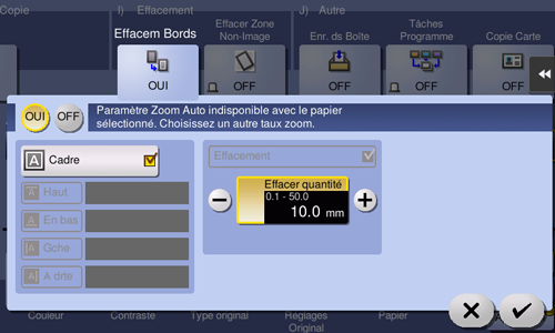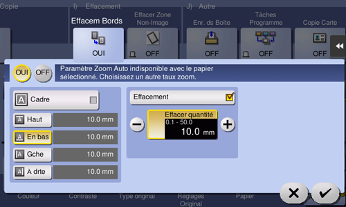 Pour effacer la même largeur sur les quatre côtés de l'original, tapez sur [+] et [-] pour spécifier la largeur à supprimer.