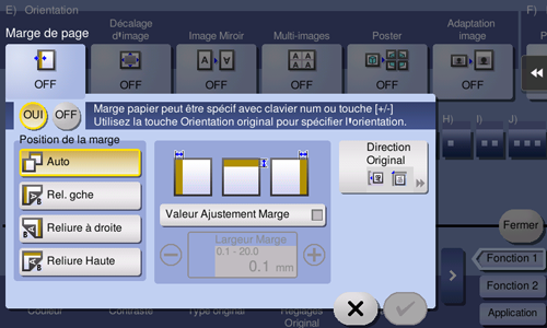 Pour procéder à la copie des deux côtés de la feuille, réglez [Position de la marge] et [Direction Original] pour s'assurer que l'original est copié dans le sens vertical correct.