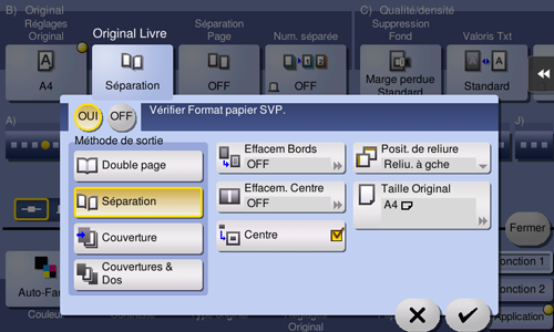 Tapez sur [OUI], sélectionnez [Séparation], puis tapez sur [OK].