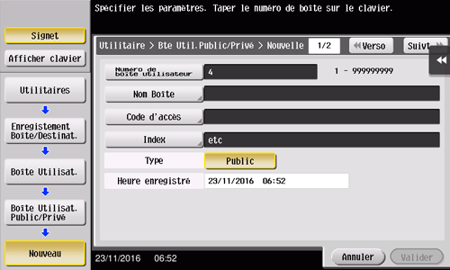 Sélectionnez [Boîte Utilisat.] - [Boîte Utilisat. Public/Privé].