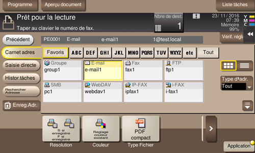 Vous pouvez changer les réglages pour [Résolution], [Couleur] et [Type Fichier].