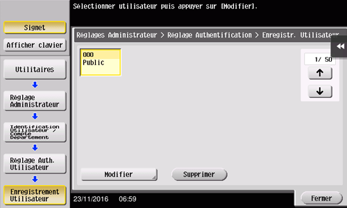 Sélectionnez [Réglage Auth. Utilisateur] - [Enregistrement Utilisateur].
