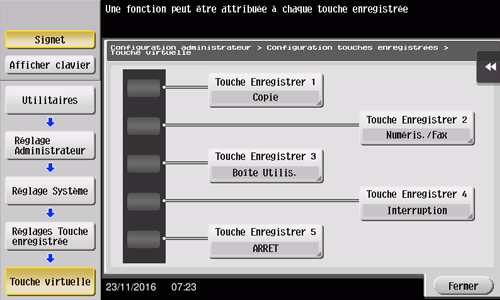 Sélectionnez [Réglage Système] - [Réglages Touche enregistrée] - [Touche virtuelle].