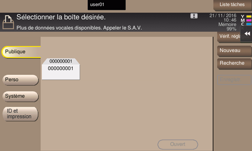 Sélectionnez [Paramètres affichage perso] - [Réglages boîte] et ensuite [Touche raccourci 1] ou [Touche raccourci 2].
