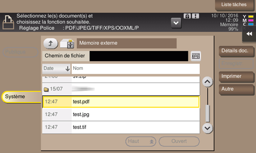 Sélectionnez un fichier à imprimer, puis tapez sur [Imprimer].