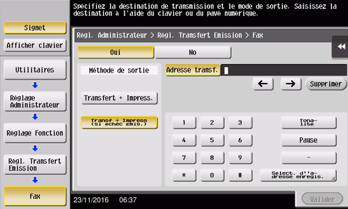 Sélectionnez [Réglage fax] - [Réglage Fonction] - [Régl. Transfert Émission].