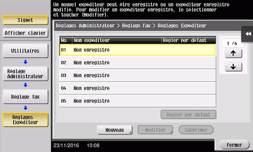 Pour définir le nom d'expéditeur par défaut, sélectionnez un nom d'expéditeur et tapez sur [Régler par défaut].