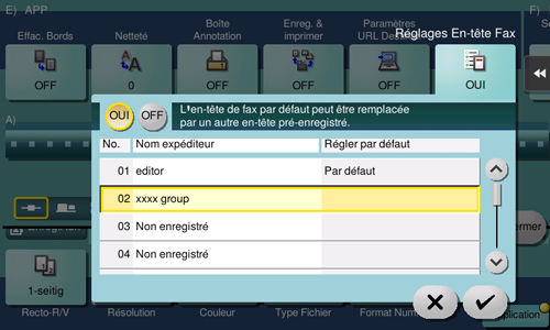 Sélectionnez un nom d'expéditeur à imprimer sur le fax et tapez sur [OK].