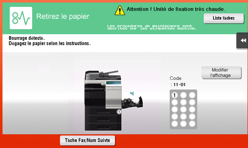 Il peut y avoir un bourrage papier dans des sections autres que celles indiquées sur l'Écran tactile. Vérifiez une nouvelle fois les section non affichées sur l'Écran tactile.