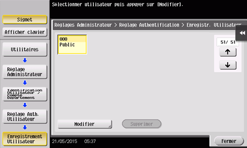] pour sélectionner [000 Public] et tapez aussi sur [Modifier].
