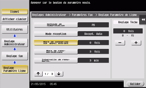Sélectionnez [Réglage fax] - [Réglage Paramètre Ligne].