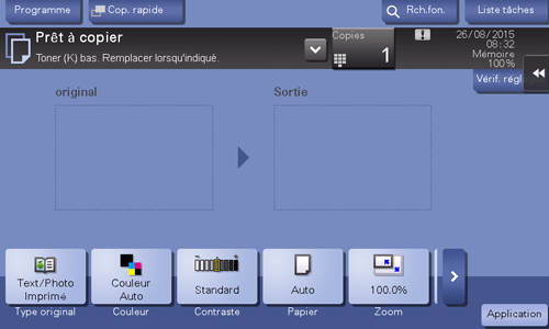 Lorsqu'il est presque temps de remplacer une Cartouche Toner, un message d'avertissement anticipé apparaît. Préparez une Cartouche Toner de remplacement selon le contrat d'entretien.