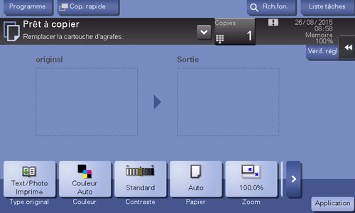 Quand la réserve d'agrafes de l'Unité de finition est épuisée, un message vous invite à faire le réapprovisionnement.