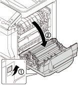 Lors de l'ouverture de la porte droite, veillez à replier au préalable le bac d'introduction manuelle.