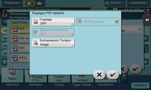Procédure d'affichage : [Numérisation/fax][Type fichier][Réglages PDF détaillés]