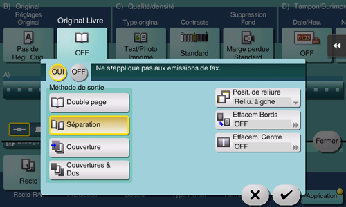 [MARCHE]/ [ARRET] | Sélectionnez [OUI] pour spécifier Original Livre. |